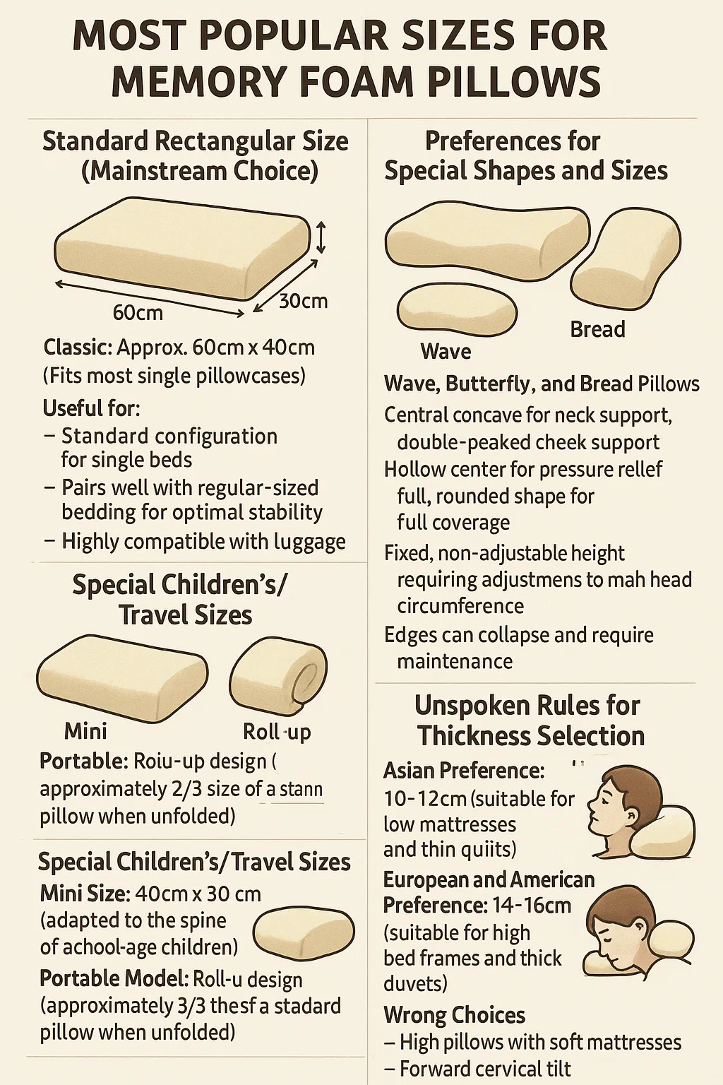 Seuraava on erittely suosituimmista kokoista muistivaahtotyynyt -